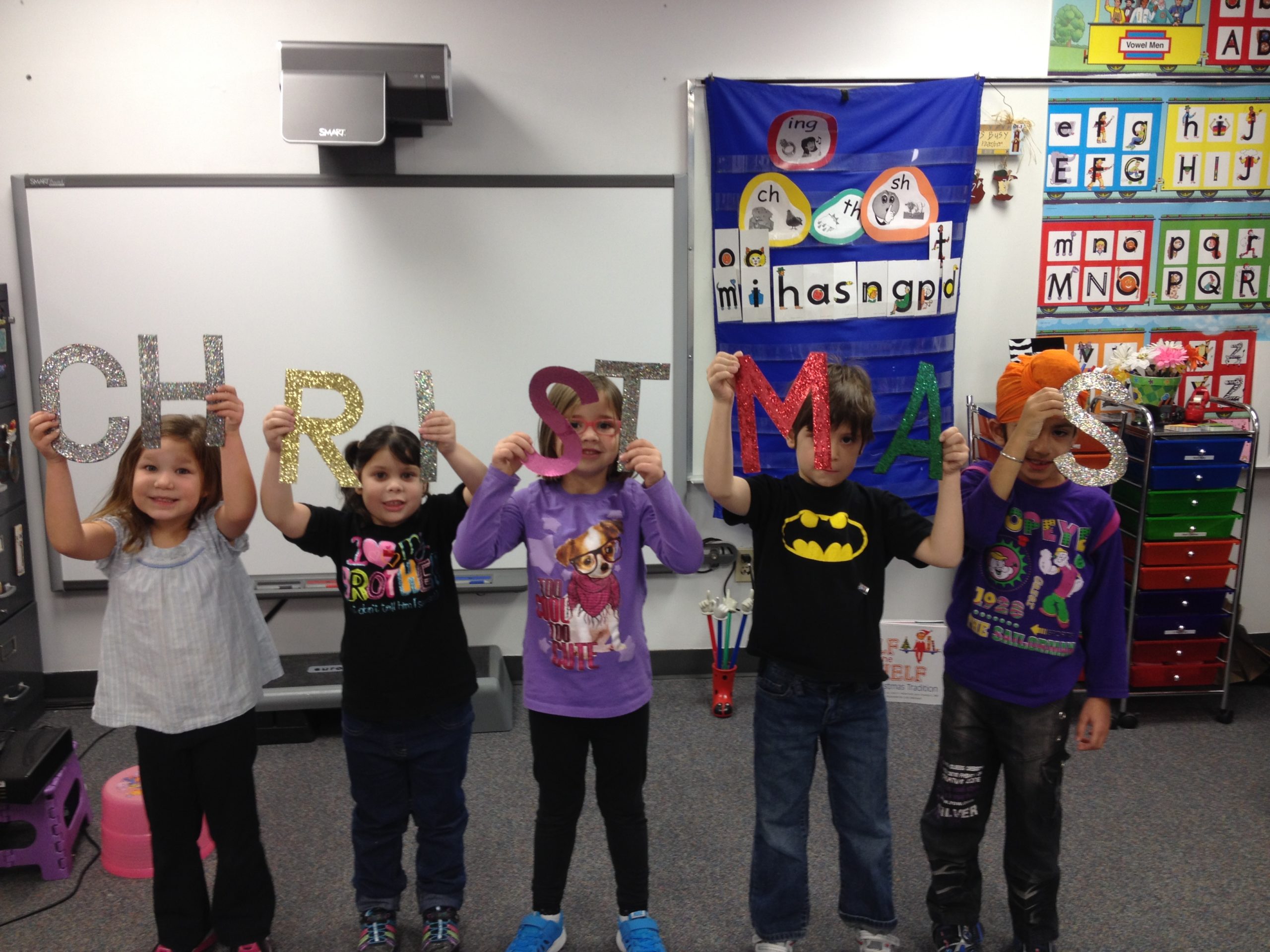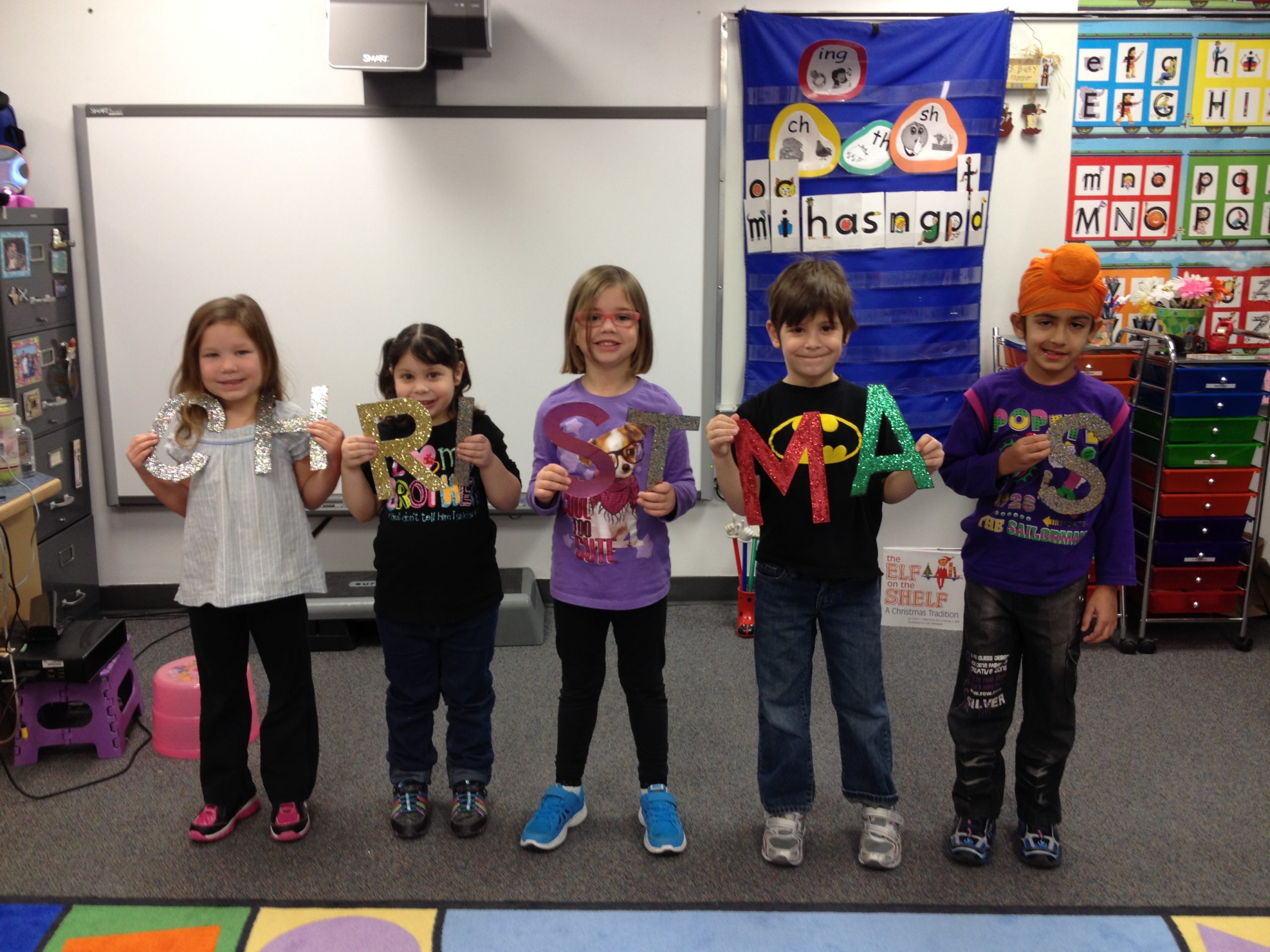 After uploading the pictures to the computer, we experimented with Auto Collage projected on our SMART Board. The students were mesmerized as Auto Collage swirled around and made different collage designs. We finally found one arrangement that everyone loved and we saved it. We then sent it to our nearest Wal-Mart for printing with the plan that Mrs. Caldwell would pick the cards up tonight in Brandon.