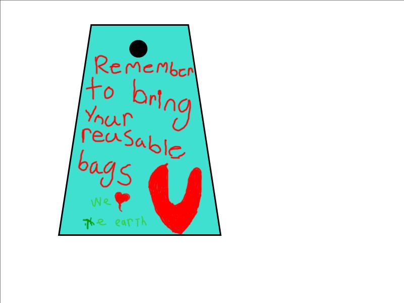 We have been busy designing and creating reminder tags in our classroom too! Students came up with lots of great ideas and we can’t wait to get them out into the community and world! Below are 3 samples of our digital designs. Please feel free to print one for yourself and help contribute to our goal of increasing reusable bag use! We’d love it if you left us a comment telling us where you will put your reminder and if it helps 🙂