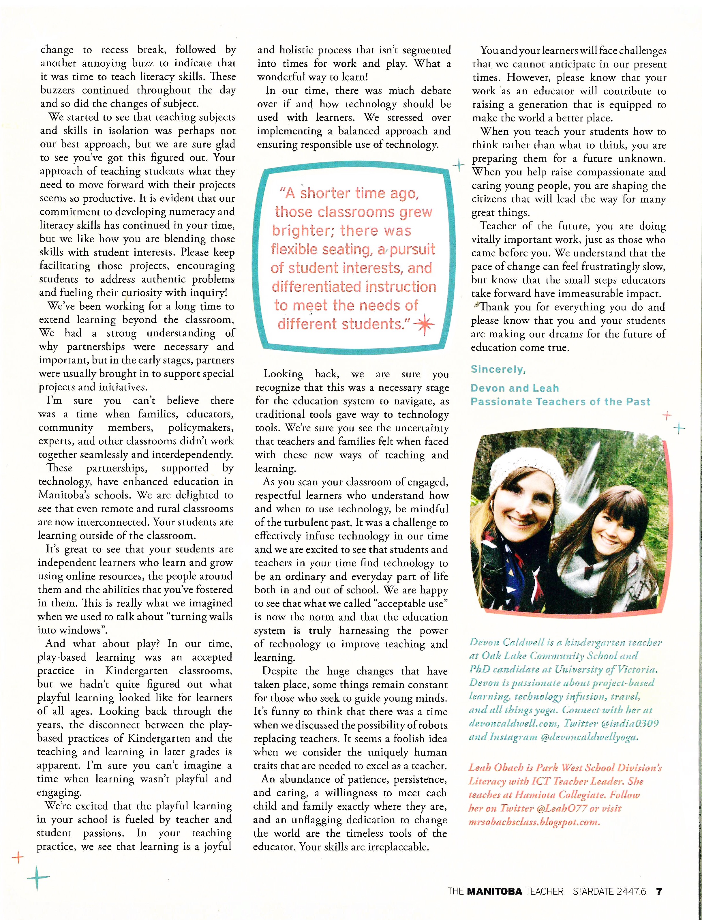 We were pleased to be invited to write an article on our thoughts about the future of education which was featured in the 100th anniversary edition of The Manitoba Teacher Magazine. Click the link to check out the full issue!